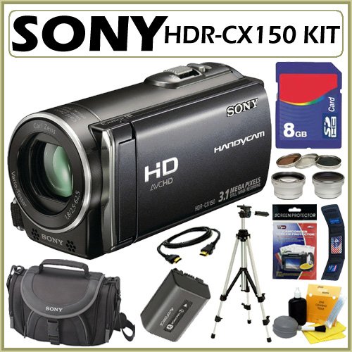 Buy Sony HDR-CX150 16GB Flash Memory High Definition Handycam® Camcorder with 3MP Still Image Capture and 25x Optical Zoom featuring a 2.7-inch Widescreen LCD in Black + 8GB Deluxe Accessory Kit |